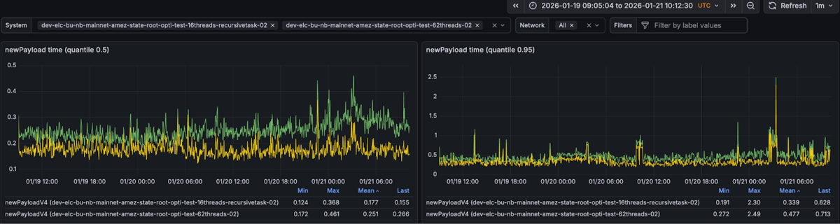 A significant portion of this improvement comes from better parallelization of storage slot reads, allowing I/O-related work to be distributed more effectively across cores. As a result, the performance gains are more pronounced on nodes backed by slower storage. On NVMe-backed nodes, where storage latency is already low, the relative impact is expected to be smaller.