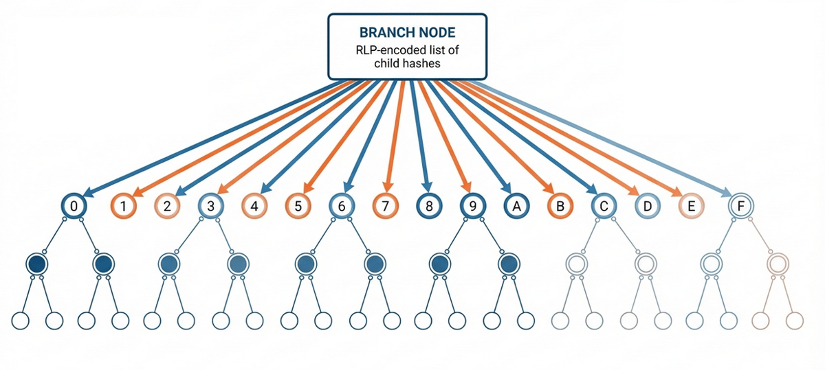 The solution lies in the inherent structure of the Merkle Patricia Trie. In Besu, branch nodes are RLP-encoded lists of 16 distinct child paths, each corresponding to a hexadecimal nibble (0 through F).