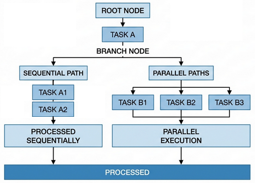 - Concurrent Processing: Each divergent path is processed independently within a different task. Those tasks can still be executed by the same thread.