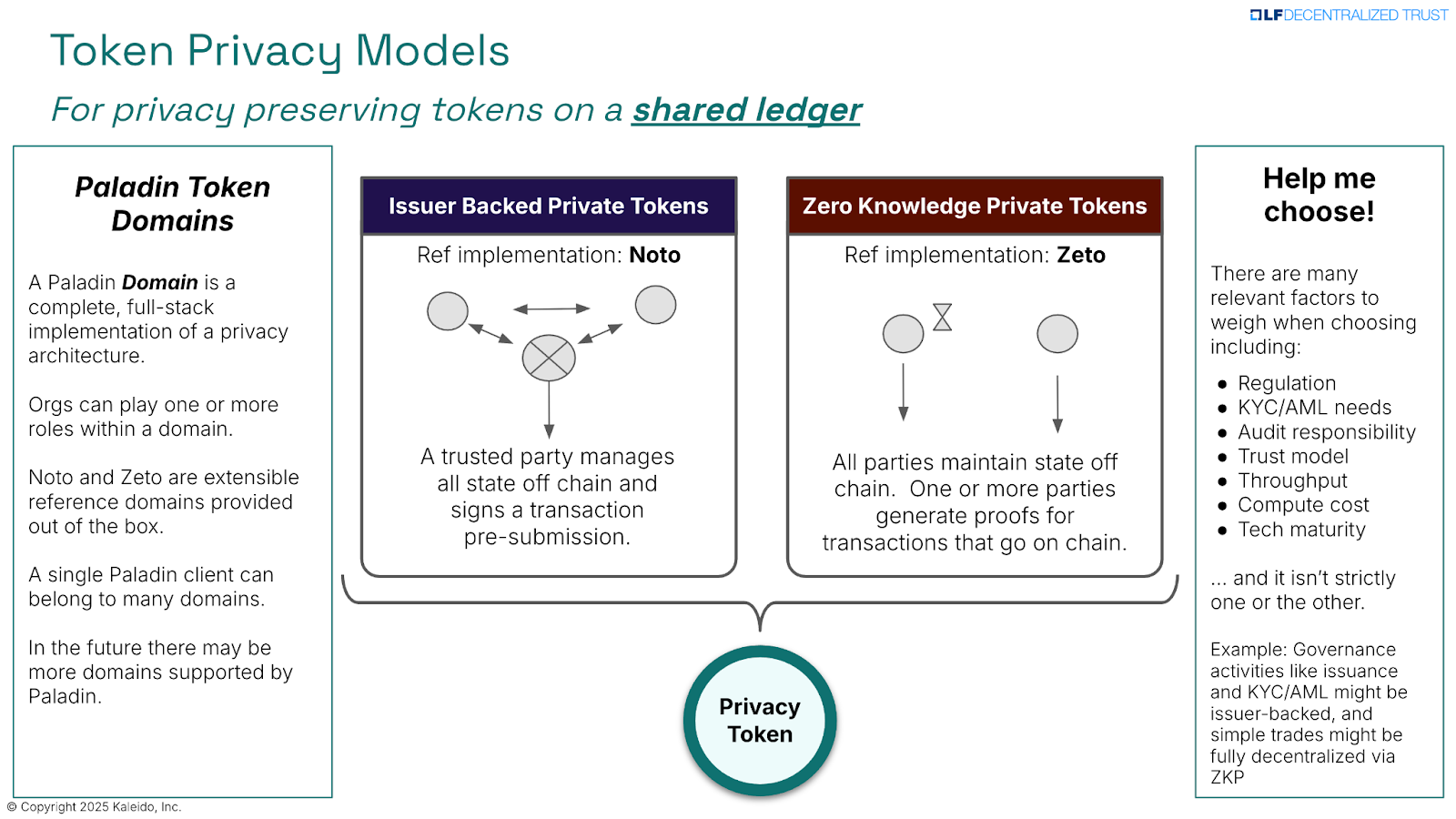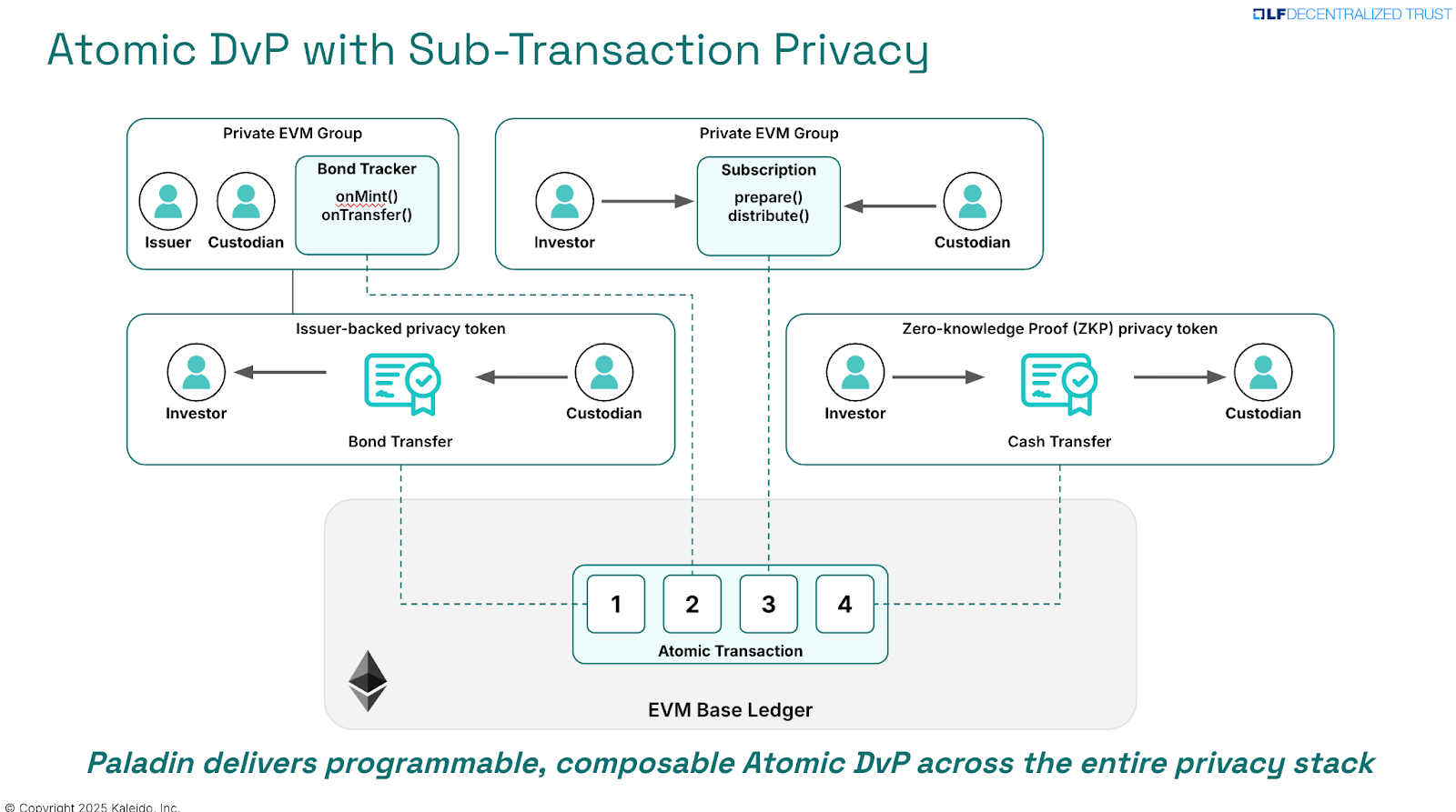 A core tenet of Paladin has been to harness the power of a shared ledger on EVM, rather than feeling constrained by it. One key lesson the community has learned since launch is just how important it is to unleash token level interoperability. Paladin supports using transparent tokens (ERC-20 etc.), mixing those with advanced cryptography based tokens like Zero Knowledge Proofs (ZKPs), and using the EVM for atomic settlement of end-to-end business transactions in a way that is impossible without the shared ledger layer.